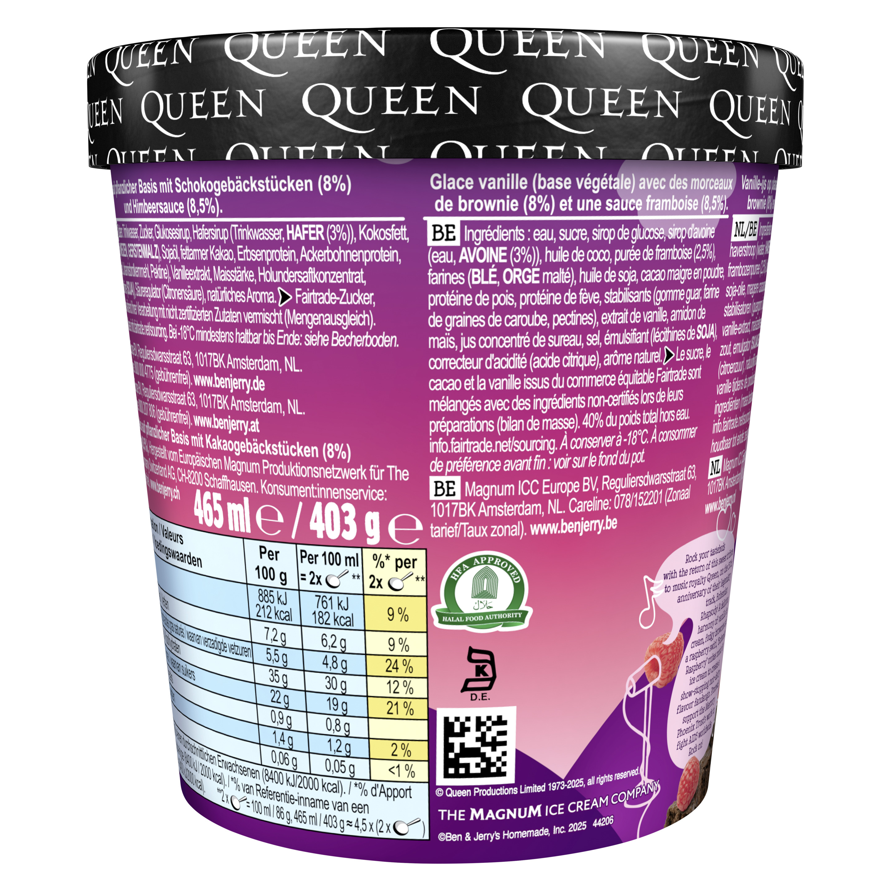 Diese köstliche Symphonie aus Vanille-Eis, super soften Brownies und einem Himbeer-Swirl wird die Welt rocken Ran an die Löffel, wer Eis und Musik liebt: Bohemian Raspberry Non-Dairy ist eine süße Hommage an die Gruppe Queen zum 50-jährigen Jubiläum ihres legendären Songs "Bohemian Rhapsody". Die Erlöse aus dem Verkauf gehen an den Mercury Phoenix Trust, eine Organisation, die weltweit Initiativen im Kampf gegen AIDS unterstützt.