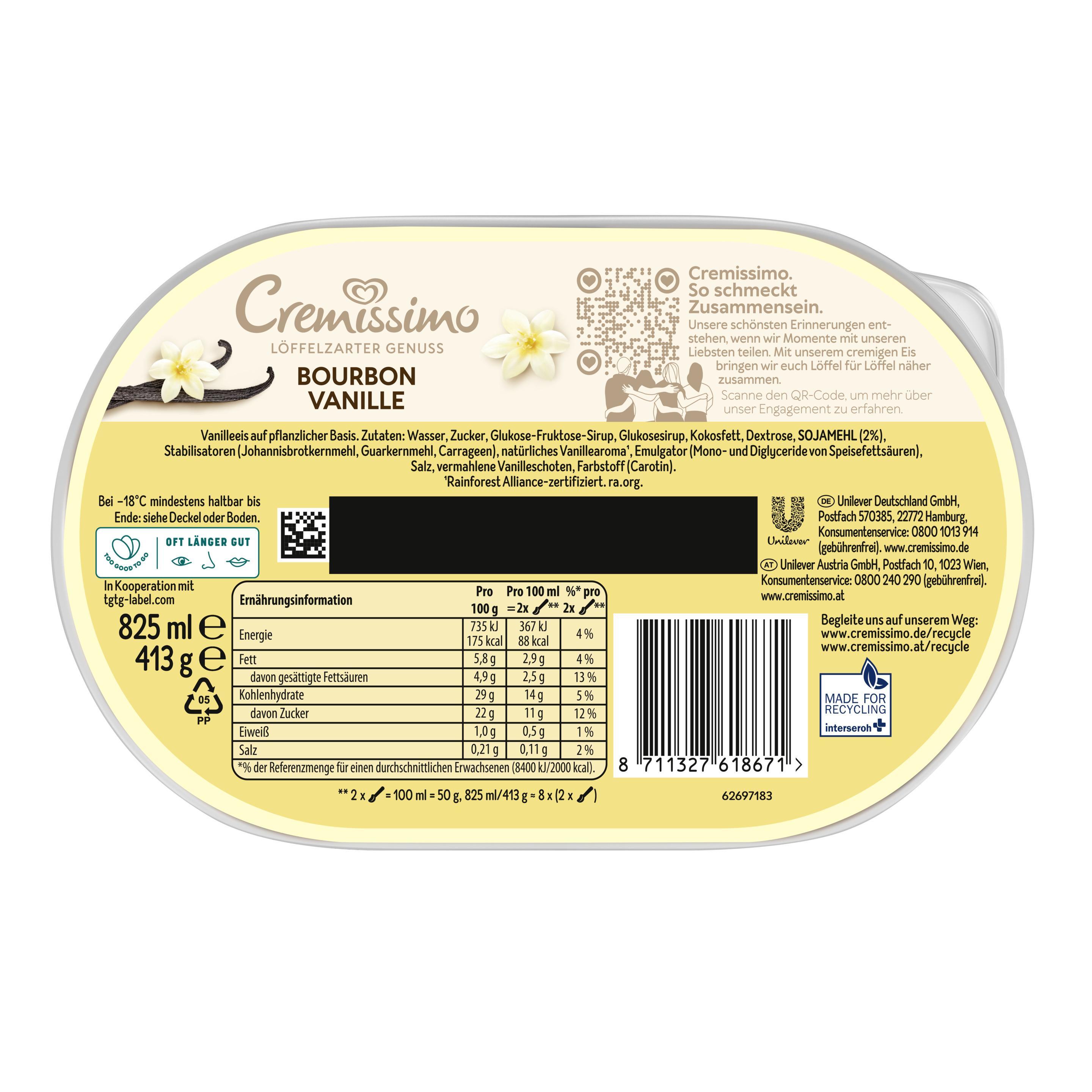 Produktinformationen "Cremissimo Bourbon Vanille Vegan Eis 825ml"