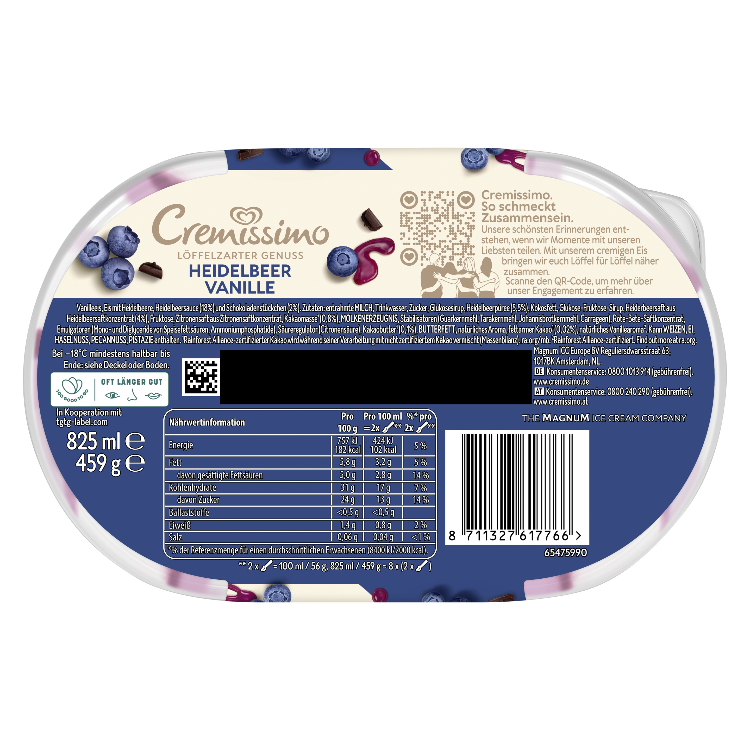 Produktinformationen "Cremissimo Heidelbeer Vanille Eis 825ml"