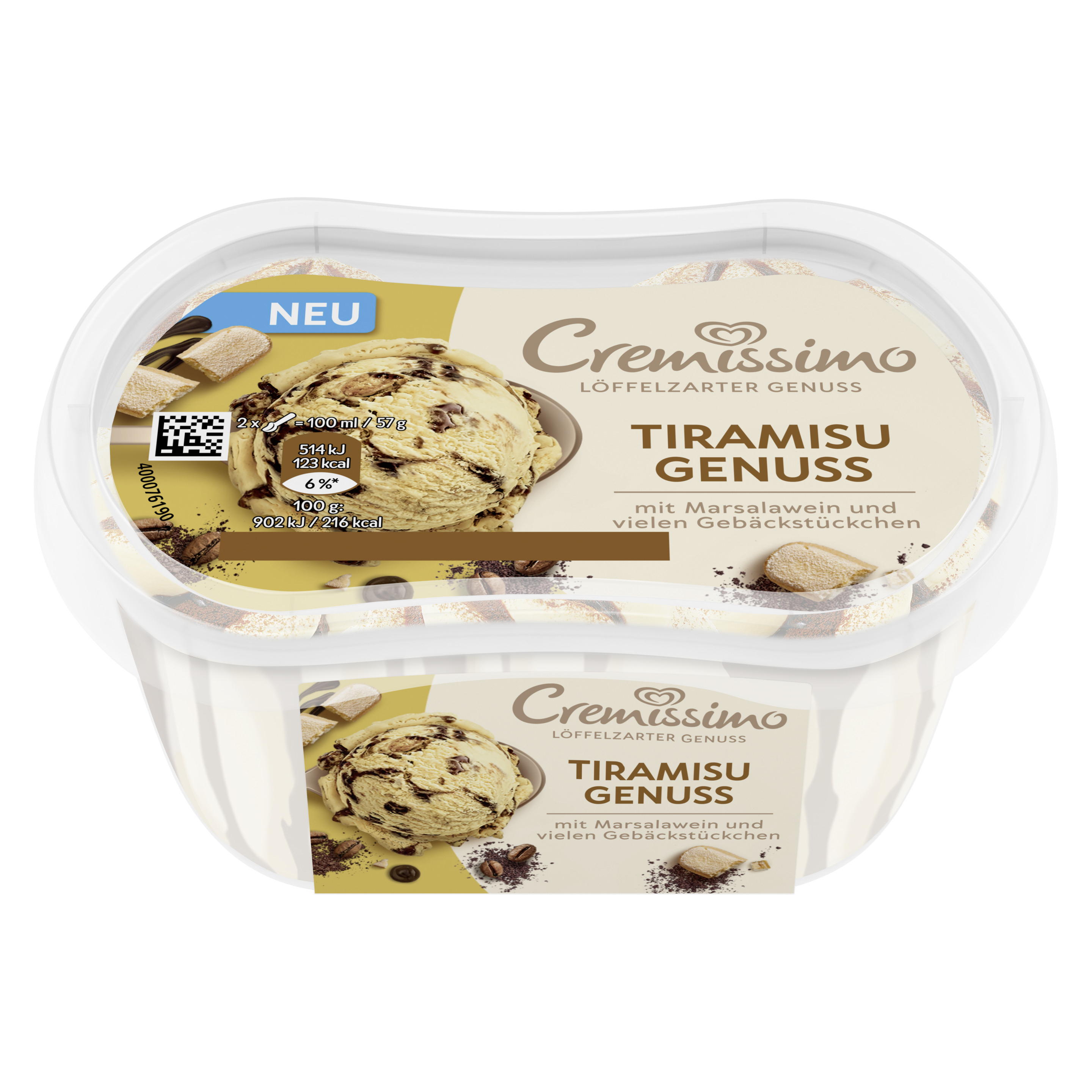Die Cremissimo Minis vereinen cremiges Eis, Sauce und spannende Toppings im handlichen 200 ml Format. Cremissimo Minis Tiramisu Genuss vereint cremiges Tiramisu Eis mit Marsalawein und Gebäckstückchen, verfeinert mit Kaffeesauce und einer zarten Kakao-Schicht im handlichen 200 ml Format. Einfach unvergleichlich lecker. Cremissimo Minis sind großer Dessert Genuss im kleinen Format und perfekt für alle, die sich keine große Eiswanne ins Eisfach stellen wollen.
