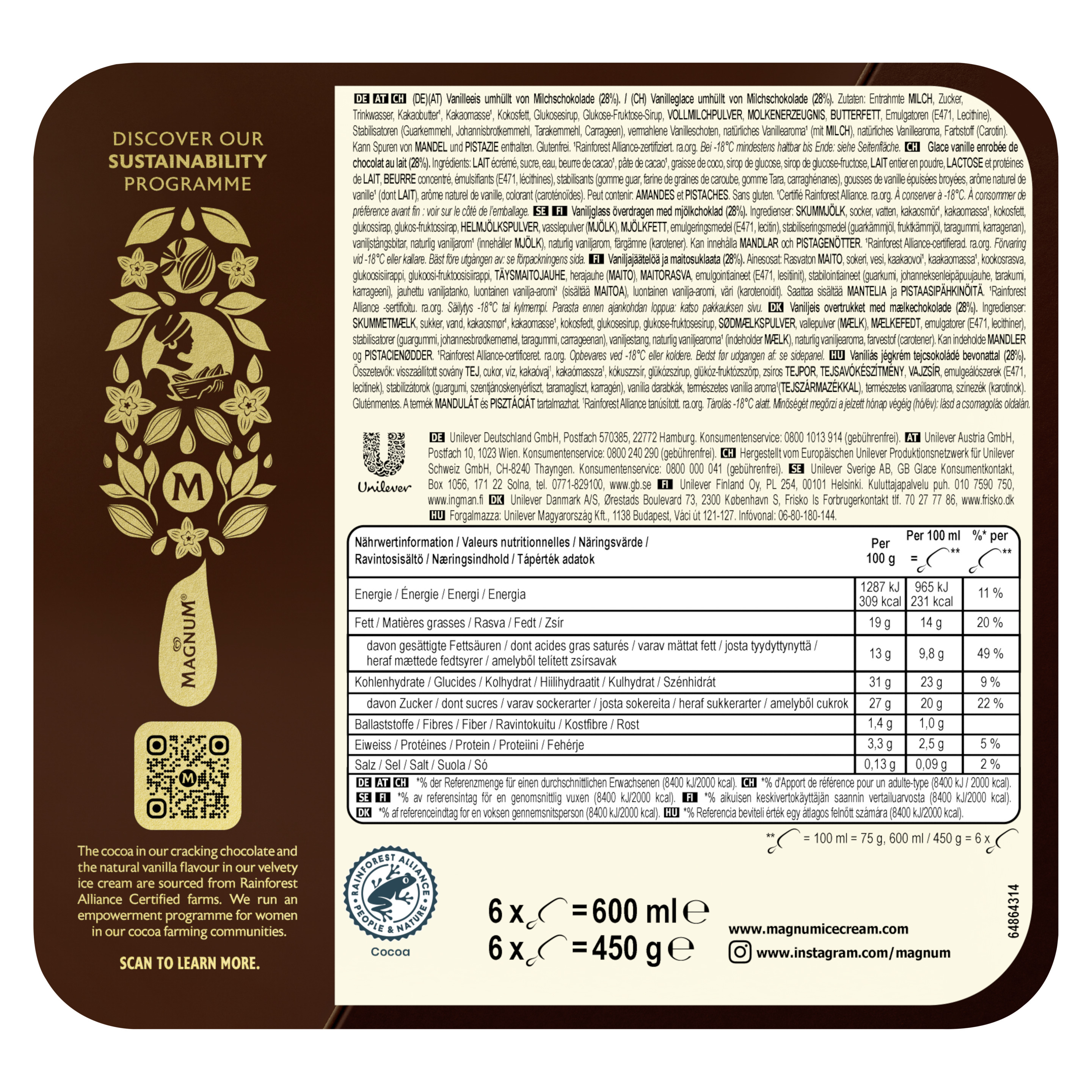 Der zeitlose Klassiker von Magnum. Köstliches Vanilleeis mit Vanille aus Madagaskar umhüllt von knackiger Milchschokolade.