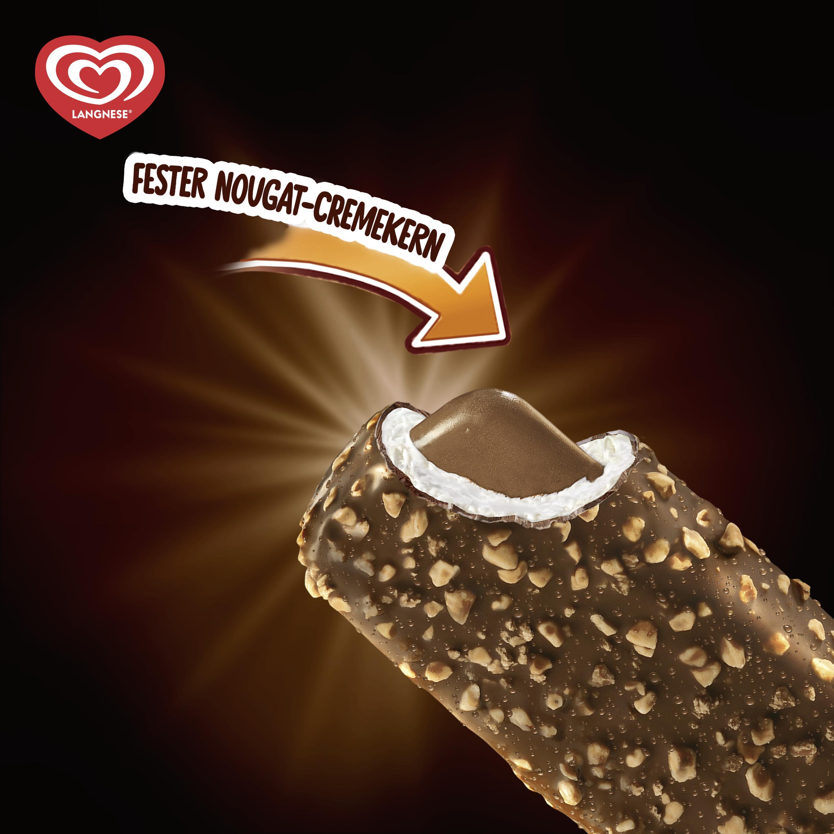 „Nogger Dir einen!“ – Leckeres Vanilleeis mit festem Nougat-Cremekern mit Rainforest Alliance-zertifiziertem Kakao und natürlichem Vanillearoma.