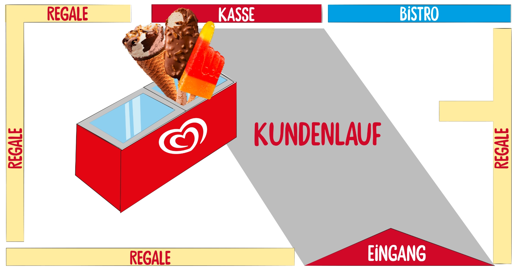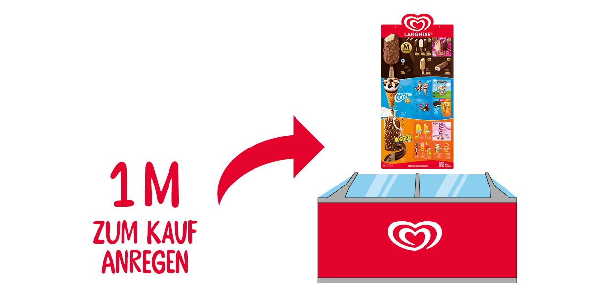 Eine strategisch gestaltete Verkaufsstelle mit optimal platzierter Eistruhe, klarem Sortiment und aufmerksamkeitsstarker Präsentation schafft die besten Voraussetzungen für Impulskäufe und Umsatzsteigerung am Point of Sale.