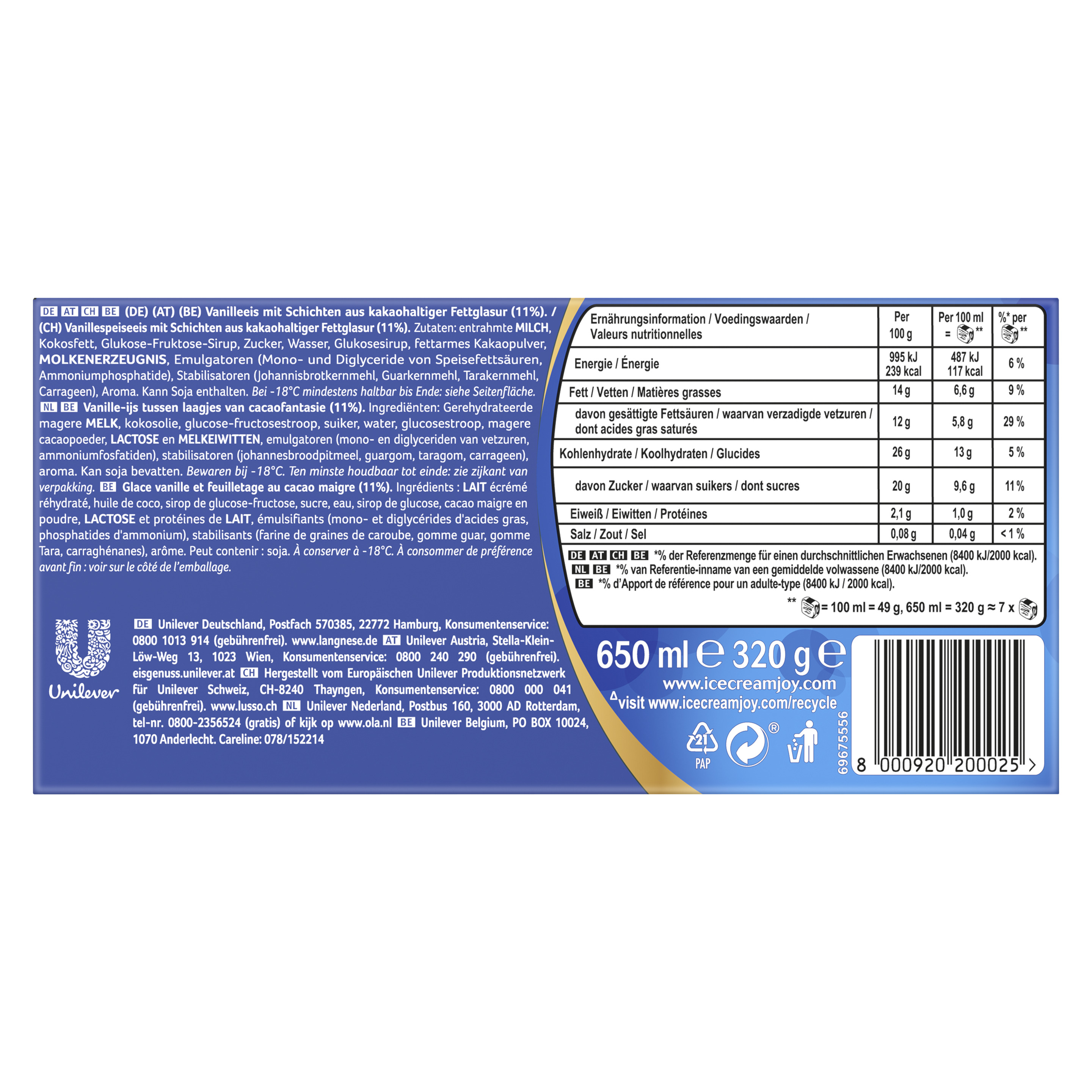 Vanilleeis mit Schichten aus kakaohaltiger Fettglasur (11%). tiefgefroren